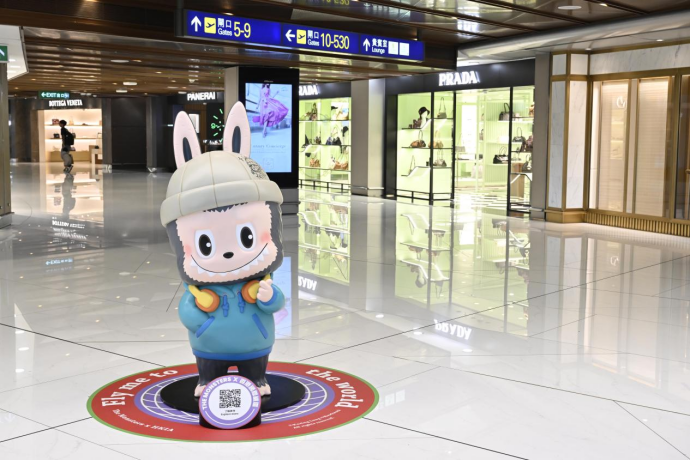 此外,在禁区离港层(L6)东大堂尊贵购物区,设有四座1.5米高的Labubu及Zimomo角色装置,配以购物袋、行李箱等旅行主题配件,他们头上更有国际知名艺术家龙家升先生的签名。其中两座设有机场特别设计打卡墙,设计以龙家升先生的手绘为蓝本,为旅客营造奇趣且互动的氛围。Labubu及Zimomo角色装置展出至11月30日,快来机场寻找他们的身影吧