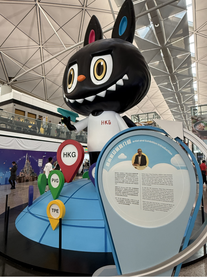 作为THE MONSTERS 系列诞生十周年世界巡展的首站,香港国际机场化身为“Monster Land”。在离港层(L7)F行段后方(非禁区),矗立着全球最巨型、高达7米的KING MON艺术装置,其手持纸飞机、身穿印有“HKG”字样的T恤,象征着从香港出发开启全球之旅,展出至11月9日。